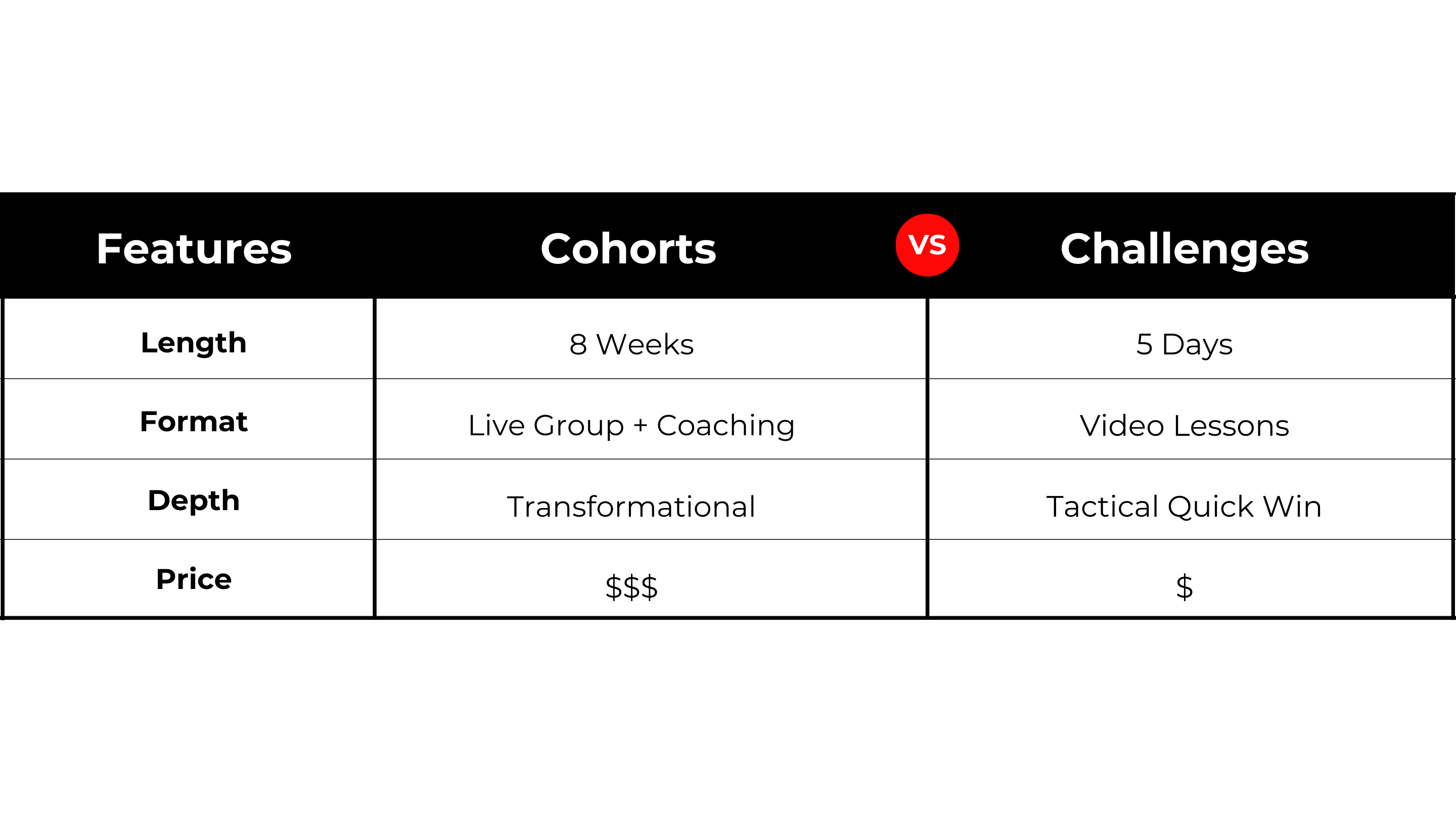 Challenges take about 30–60 minutes per day for one week. Cohorts typically ask for 2–3 hours per week, including live sessions.